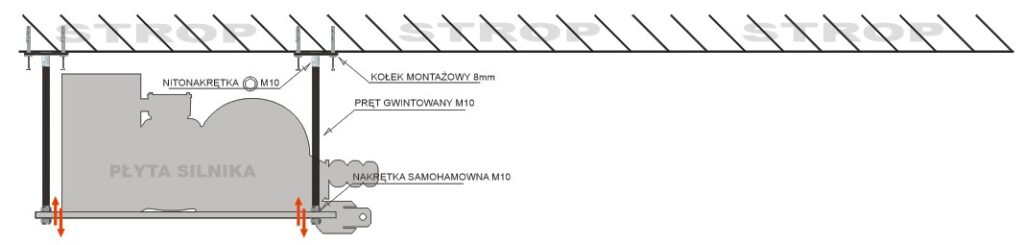 Płytę silnika tarczociągu montujemy za pomocą prętów gwintowanych w rozmiarze M10 lub na wcześniej przygotowanej konstrukcji stalowej.