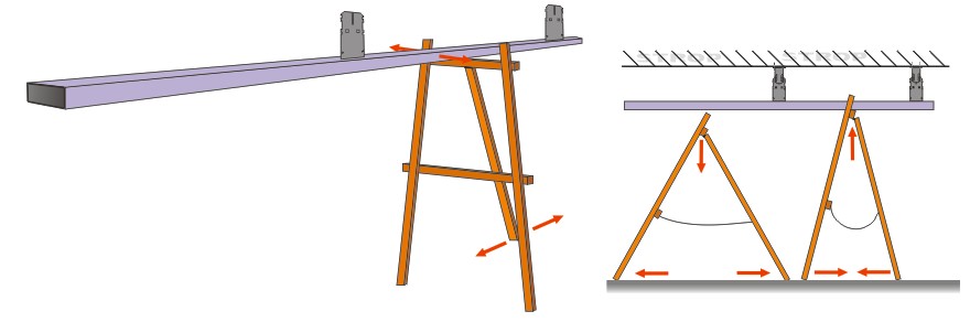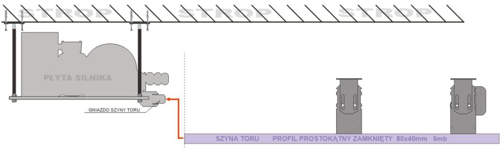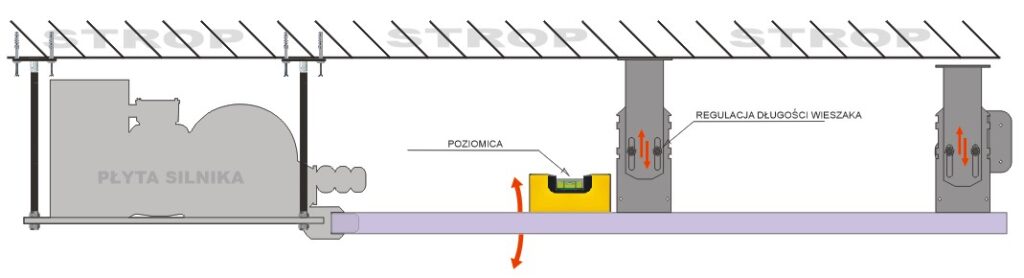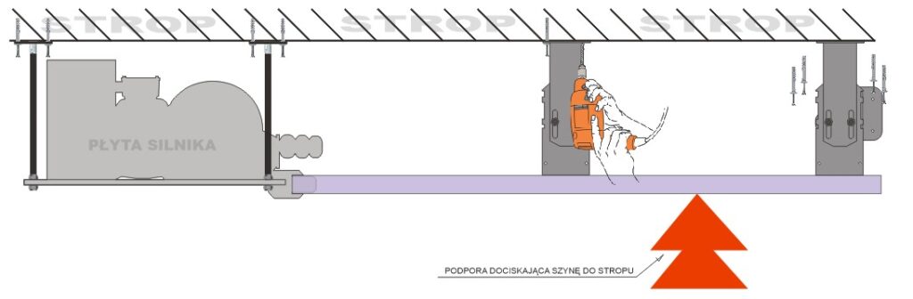 Po prawidłowym ustawieniu poziomu i linii toru, szynę można docisnąć lekko do stropu podporą np. w postaci „sztalugi”. Unieruchomienie