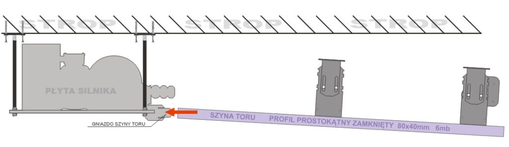 3. Montaż odcinka szyny do zawieszonej wcześniej płyty silnika
