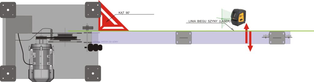 wpływ na poprawną pracę rolek prowadzących linkę. Polecamy użyć do tego urządzeń laserowych wyświetlających pionową linię
