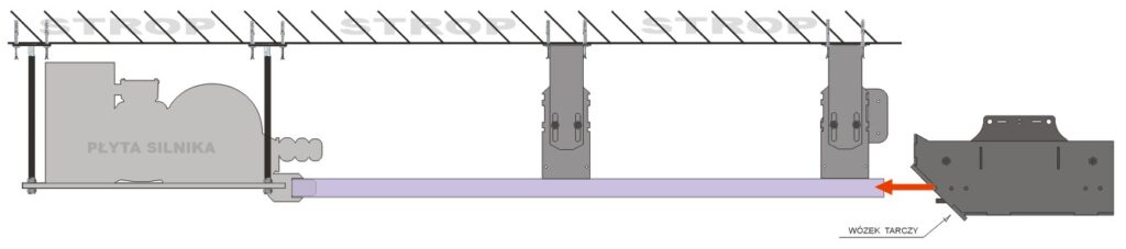 Przykładowo jeśli planujemy tor 25m a wózek tarczy parkowany będzie standardowo tuż przy płycie silnika to musimy przewidzieć 26mb