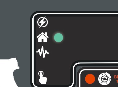 zielono diody na panelu czołowym oznaczonej symbolem domku oraz jednocześnie diodę kontrolną