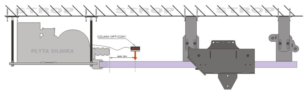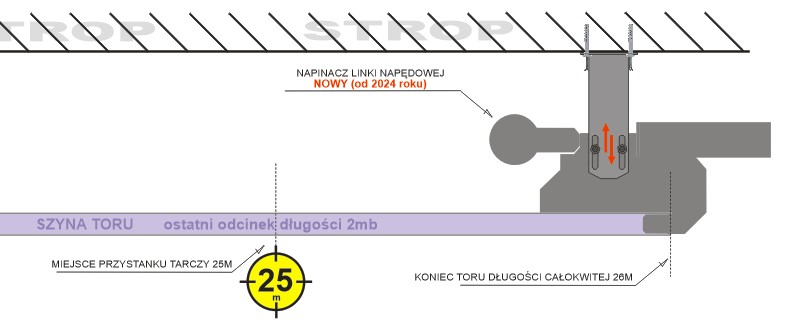 takim wypadku uchwyt stropowy napinacza linki wpięty na koniec szyny.